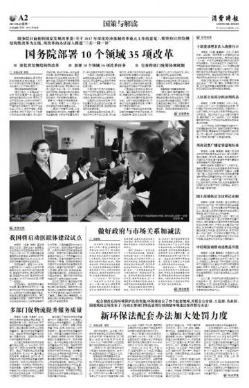 国务院部署10个领域35项改革